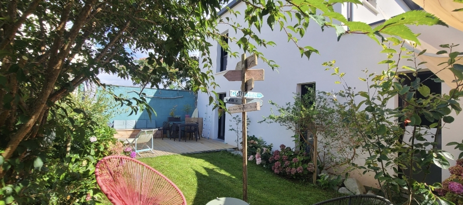Attendez-vous à un véritable coup de coeur pour cette contemporaine construite en 2020. La maison est entièrement décorée avec un goût très sûr et la propriétaire a vraiment beaucup oeuvré pour donner à sa maison un cocon de verdure. Vous serez accueillis par une jolie terrasse sans vis à vis et parfaitement exposée. Passée la porte d'entrée, vous serez séduits par le charme et l'ambiance chaleureuse que dégage cette maison. La pièce de vie est ouverte sur la cuisine et un petit espace bureau derrière une verrière. En été la grande baie vitrée invite la terrasse à prolonger l'espace de vie. Une extension est d'ailleurs tout à fait envisageable à cet endroit. Vous apprécierez l'espace parental au rez de chaussée qui s'offre également une petite terrasse privative. L'étage propose trois chambres très lumineuses et une salle d'eau. Un cabanon est à votre disposition pour le rangement et pour les soirées ensoleillées, une terrasse à l'ouest vous permettra de profiter jusque tard. Oubliez votre projet de construction, venez poser vos meubles!