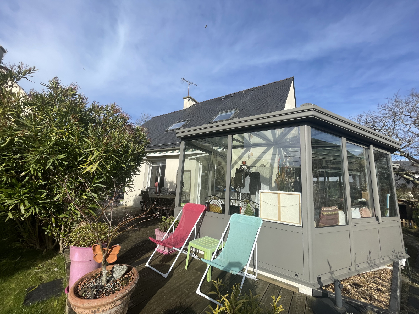 C'est en exclusivité que nous vous proposons cette maison contruite en 1999 sur 430 m² de terrain. Sa situation proche du Moulin Blanc lui permet de vous offrir une jolie vue mer de l'étage. Elle propose au rez de chaussée, un hall d'entrée qui s'ouvre sur un salon-séjour très lumineux et doté d'une cheminée, la cuisine est à la fois ouverte sur le séjour et sur une véranda récente qui offre un espace bien agréable pour prendre vos repas. Une chambre de 14 m² et une salle d'eau complètent ce niveau. A l'étage, vous disposerez de trois chambres et un bureau ainsi que d'une salle de bains. La maison est construite sur un sous-sol complet qui permet de garer votre véhicule et un beau volume de rangement. Dernièrement les propriétaires ont ajouté un jardin d'hiver qui communique avec la véranda en créant un espace très agréable à la mi-saison. Cette maison est bien entretenue et mérite votre visite.