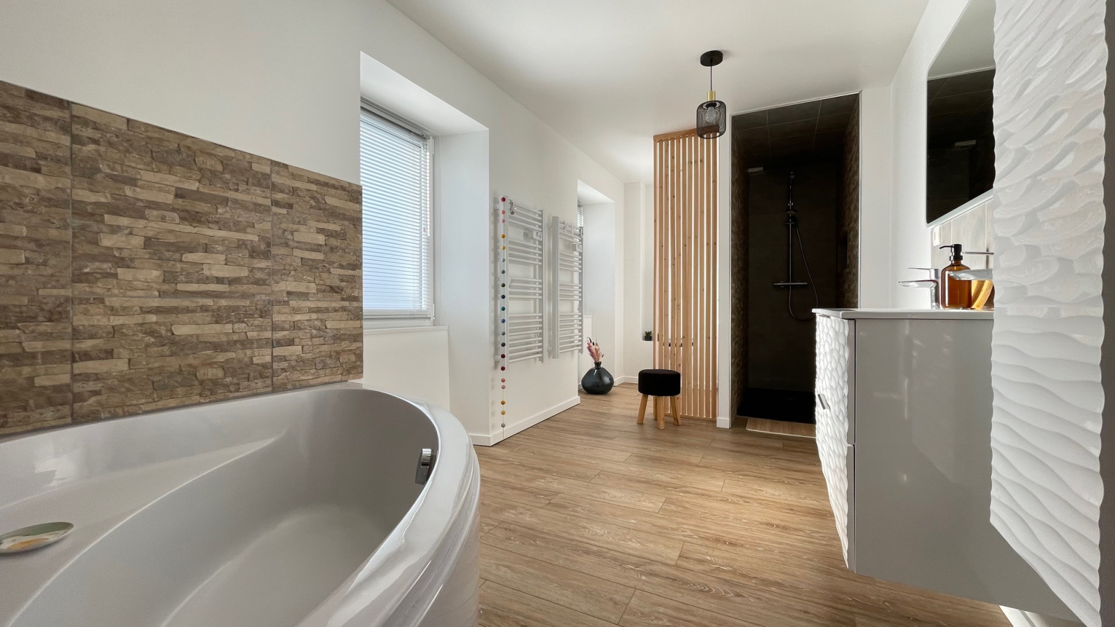 L'étage et les combles abritent 5 belles chambres et une salle de bains.