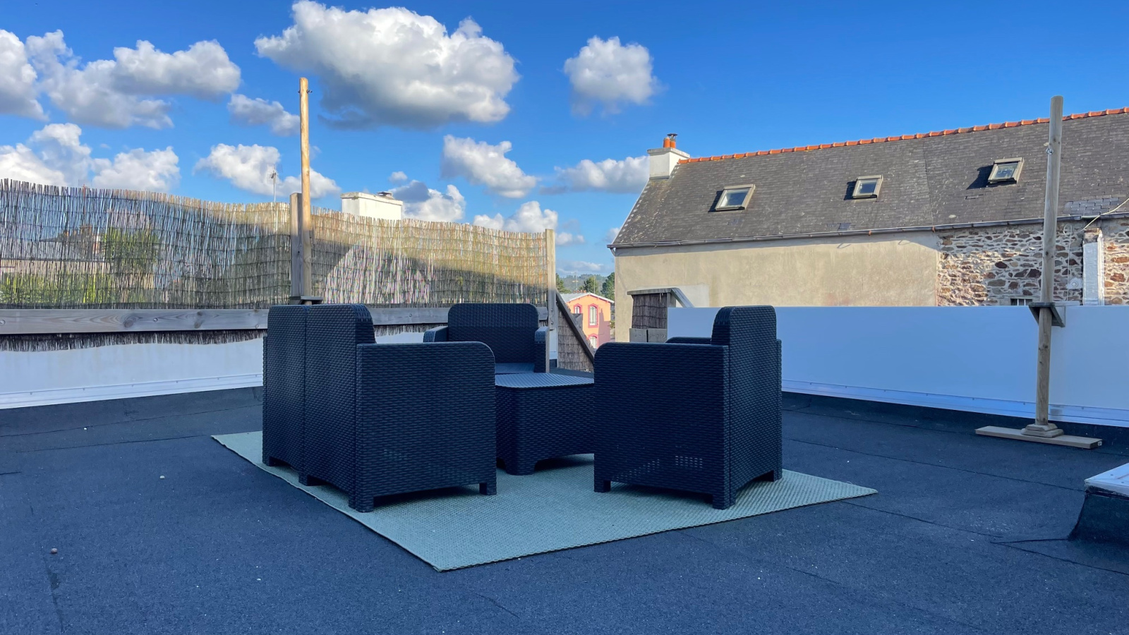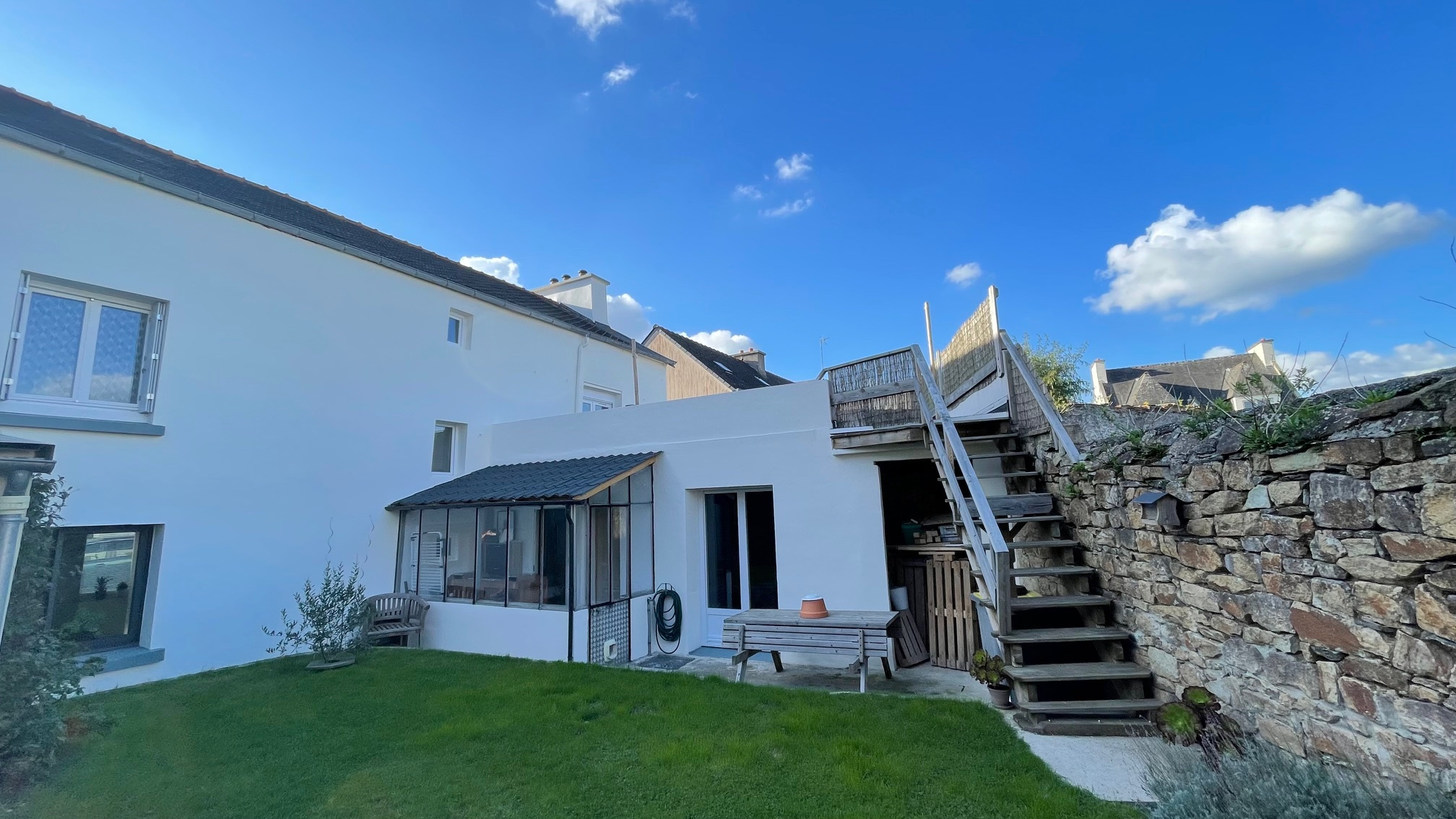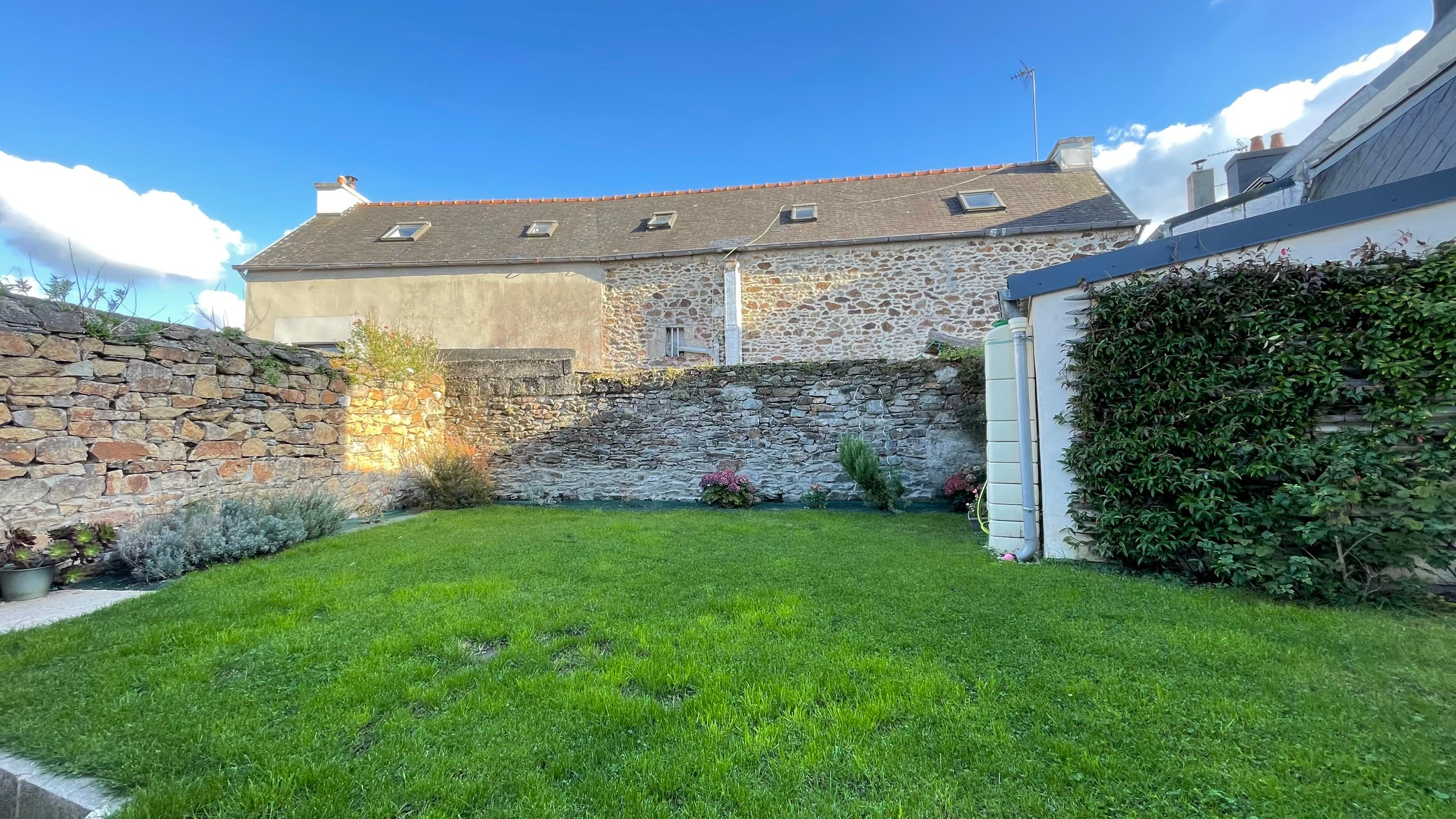 Le petit jardin, clos de mur, accueille une grande terrasse et un cabanon maçonné.