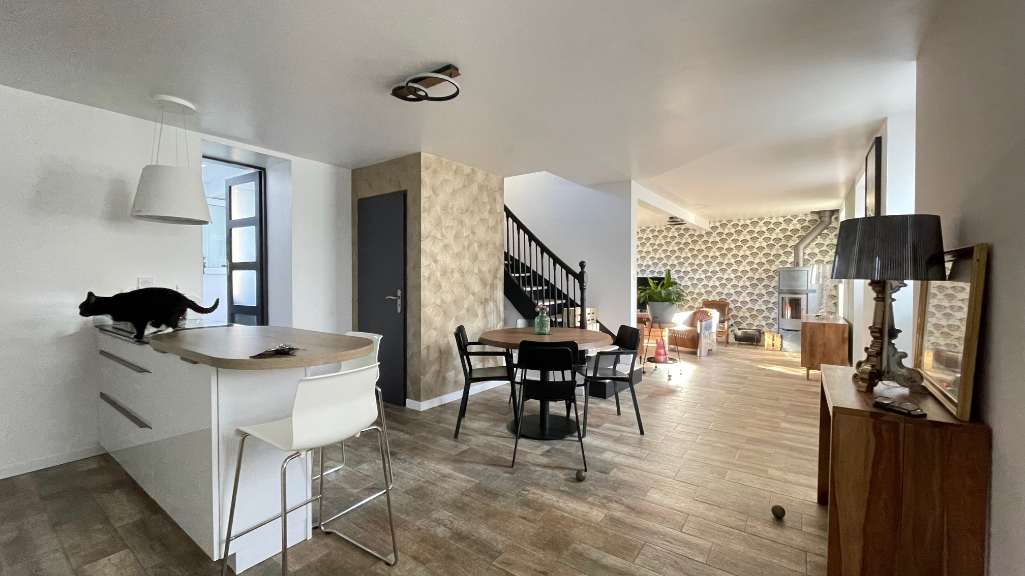 C'est au centre de la commune, proche des commerces, et à 10 minutes à pied de la corniche que nous vous proposons de découvrir cette volumineuse maison de ville. Le rez de chaussée propose une cuisine ouverte sur un séjour avec poële à bois, une chambre avec salle d'eau permettant une vie de plain pied, et une buanderie.