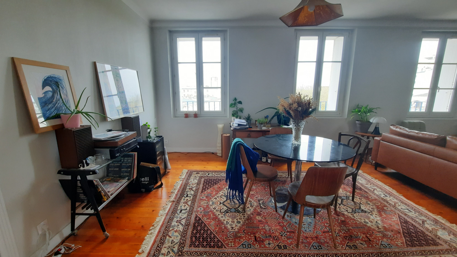 L'appartement est composé d' une pièce de vie de 32 m2 avec cheminée fonctionnelle avec insert et de beaux parquets. Une cuisine aménagée, deux chambres avec chacune sa salle d'eau privative.