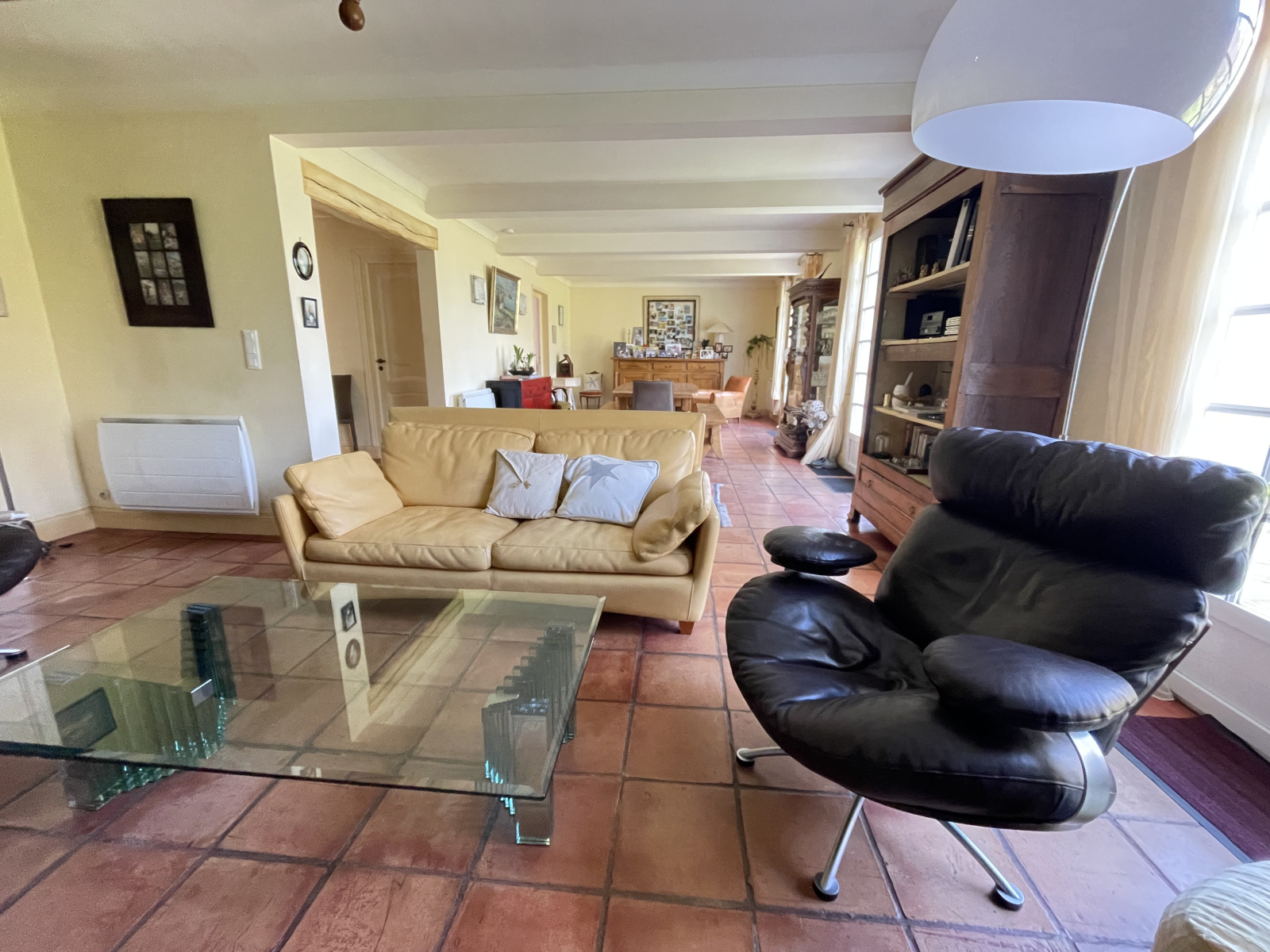 C'est une régionale de bonne facture qui a été bien pensée dès sa construction et qui propose des volumes généreux. Au rez de chaussée, un hall d'entrée dessert une cuisine indépendante et un séjour de 50m², sur tomettes, avec cheminée. Ses 3 portes fenêtres ouvertes sur la terrasse Sud/Ouest lui apporte une belle luminosité. On y trouve aussi une vaste chambre avec salle d'eau récente. L'étage bénéficie d'une mezzanine, 3 chambres, un bureau, une salle d'eau.